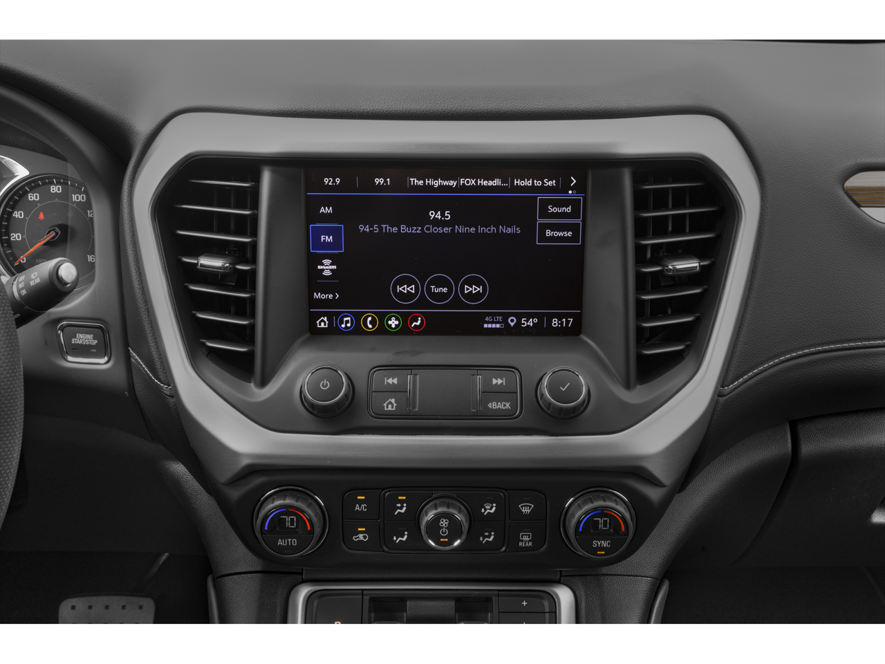 - 8" diagonal GMC Infotainment System with Navigation, includes multi-touch display, AM/FM/SiriusXM1 radio