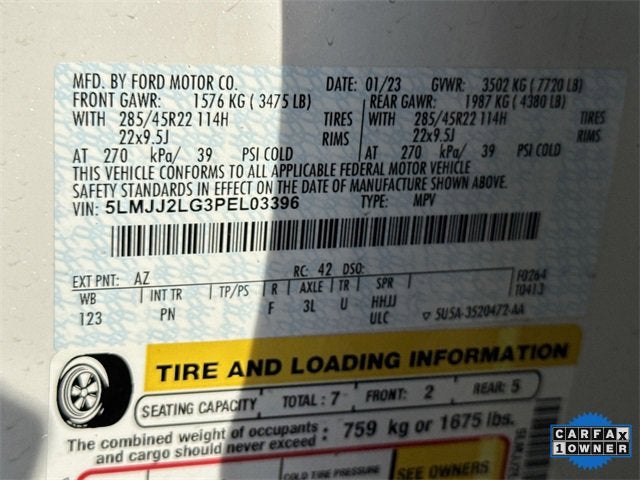 Equipment Group 201A Reserve I, Heavy-Duty Trailer Tow Package (26mm Radiator, Class IV w/4-Pin & 7-Pin Connectors, Electronic Traction Assist (eLSD), Front Tow Hooks, Pro-Trailer Backup Assist 2.0, Smart Trailer Tow, Tiered Cargo Area Management System, Trailer Brake Controller, and Trailer Sway Control), Luxury Package (Illuminated 1st & 2nd Row Seat Belts, Lincoln Lit Star in Grille, Perfect Position Seats (30-Way) w/Active Motion, and Radio: Revel Ultima 3D Audio System w/28 Speakers), 4WD, Sandstone Leather, Active Cruise Control, Air Conditioning, Heads-Up Display, Heated rear seats, Low tire pressure warning, Navigation system: Connected Navigation (3-year trial), Pedal memory, Power steering, Power windows, Telescoping steering wheel, Tilt steering wheel, Traction control, Ventilated rear seats, Wheels: 22 Bright Machined Aluminum, 14 Speakers, 3.73 Axle Ratio, 3rd row seats: split-bench, 4-Wheel Disc Brakes, ABS brakes, Active Park Assist 2.0 Delete, Adaptive suspension, Adjustable pedals, Alloy wheels, AM/FM radio: SiriusXM with 360L, Audio memory, Auto High-beam Headlights, Auto Start-Stop Technology, Auto tilt-away steering wheel, Auto-dimming door mirrors, Auto-dimming Rear-View mirror, Auto-leveling suspension, Automatic temperature control, Bodyside moldings, Brake assist, Bumpers: body-color, Compass, Delay-off headlights, Driver door bin, Driver vanity mirror, Driver's Seat Mounted Armrest, Dual front impact airbags, Dual front side impact airbags, Electronic Stability Control, Emergency communication system: 911 Assist, Exterior Parking Camera Rear, Four wheel independent suspension, Front anti-roll bar, Front Bucket Seats, Front dual zone A/C, Front fog lights, Front reading lights, Fully automatic headlights, Garage door transmitter, Genuine wood dashboard insert, Genuine wood door panel insert, Hands-Free Liftgate Delete, Head restraints memory, Heated door mirrors, Heated front seats, Heated steering wheel, HVAC memory, Illuminated entry, Leather steering wheel, Memory seat, Occupant sensing airbag, Outside temperature display, Overhead airbag, Overhead console, Panic alarm, Passenger door bin, Passenger seat mounted armrest, Passenger vanity mirror, Power adjustable rear head restraints, Power door mirrors, Power driver seat, Power Liftgate, Power moonroof: Panoramic Vista Roof, Power passenger seat, Prem Lthr Auto Htd/Ventiltd Perfect Position Seats, Radio data system, Radio: Revel AM/FM/HD/MP3 Audio System, Rain sensing wipers, Rear air conditioning, Rear anti-roll bar, Rear audio controls, Rear reading lights, Rear window defroster, Rear window wiper, Reclining 3rd row seat, Remote keyless entry, Security system, SiriusXM w/360L, Slow Climb Drive Mode, Speed control, Speed-sensing st