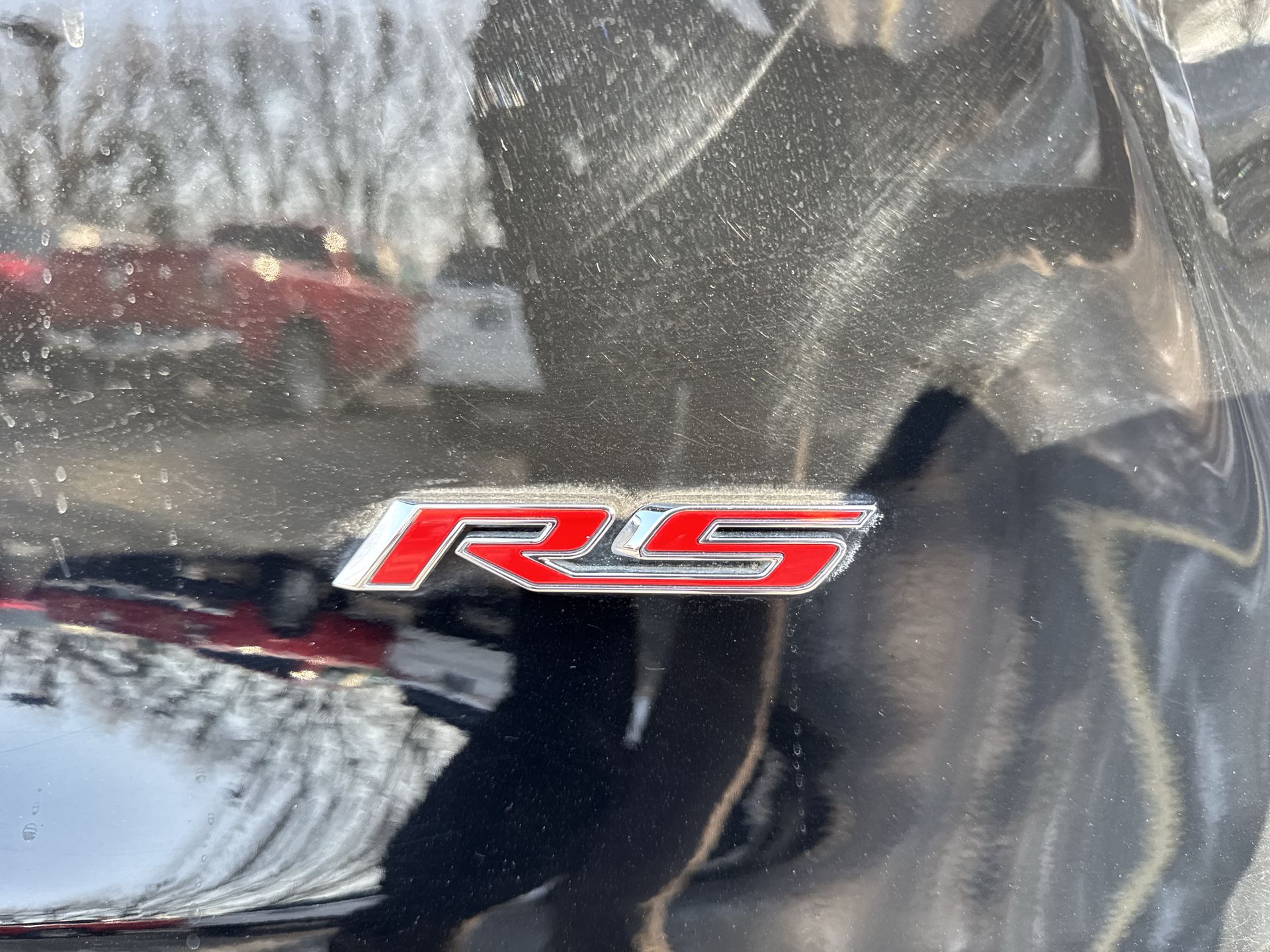 - High-Gloss Black hexagonal design with Black header bar, Black bowtie emblem and RS badging