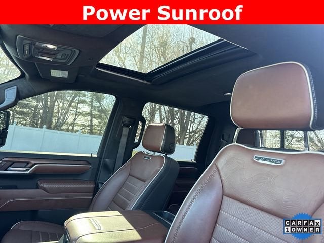 Gooseneck/5th Wheel Prep Package, Preferred Equipment Group 5SB (2-Speed Active Transfer Case, Bose Premium Series 12-Speaker System, HD Surround Vision, Rear Cross Traffic Alert, Safety Alert Seat, Spray-On Pickup Bedliner w/GMC Logo, Trailer Side Blind Zone Alert, Ultrasonic Front & Rear Park Assist, Wireless Charging, 120-Volt Bed Mounted Power Outlet, 120-Volt Instrument Panel Power Outlet, 2 Charge-Only Rear USB Ports, 2 Charge/Data USB Ports Inside Center Console, 2 USB Ports, Bed View Camera w/2 Trailer Camera Provisions, Deep-Tinted Glass, Electric Rear-Window Defogger, Floor-Mounted Center Console, Front Rain-Sensing Wipers, Heated 2nd Row Outboard Seats, Heated Driver & Front Outboard Passenger Seats, Keyless Open & Start, LED Cargo Area Lighting, LED Smoked Amber Roof Marker Lamps, Manual Tilt-Wheel/Telescoping Steering Column, OnStar Services Capable, Power Front Passenger Windows w/Express Up/Down, Power Sliding Rear Window w/Defogger, Power Sunroof, Push Button Start, Rear Wheelhouse Liners, Remote Vehicle Starter System, Signature Denali Ultimate Grille in Vadar Chrome, SiriusXM w/360L Trial Subscription, Steering Wheel Audio Controls, Trailer Cam Provisions & Trailer Viewing Software, Trailer Tire Pressure Monitor Sensors, Unauthorized Entry Theft-Deterrent System, Universal Home Remote, Ventilated Driver & Front Passenger Seats, and Wireless Phone Projection), Technology Package (Inside Rearview Auto-Dimming Rear Camera Mirror and Multicolor 15 Diagonal Head-Up Display), X31 Off-Road Package (Hill Descent Control), 10-Speed Automatic, 4WD, Alpine Umber Leather, 16-Way Power Driver Seat Adjuster w/Lumbar, 16-Way Power Passenger Seat Adjuster w/Lumbar, 3.42 Axle Ratio, Air Conditioning, Automatic Emergency Braking, Buckle to Drive, Following Distance Indicator, Forward Collision Alert, Front Pedestrian Braking, Heated rear seats, In-Vehicle Trailering System App, Navigation System, Power steering, Power windows, Radio: AM/FM w/Premium GMC Infotainment System, Remote keyless entry, 12 Speakers, 220-Amp Alternator, 4-Wheel Disc Brakes, ABS brakes, Alloy wheels, AM/FM radio: SiriusXM with 360L, Apple CarPlay/Android Auto, Auto High-beam Headlights, Auto-dimming door mirrors, Auto-dimming Rear-View mirror, Automatic temperature control, Block heater, Body Color Wheel Arch Moldings (LPO), Brake assist, Bumpers: body-color, Compass, Delay-off headlights, Driver door bin, Driver Memory, Driver vanity mirror, Dual front impact airbags, Dual front side impact airbags, Dual Heavy-Duty 70 Amp Battery, Electronic Stability Control, Emergency communication system: OnStar, Front anti-roll bar, Front Bucket Seats, Front Center Armrest, Front dual zone A/C, Front fog lights, Front reading lights, Front wheel independent suspe